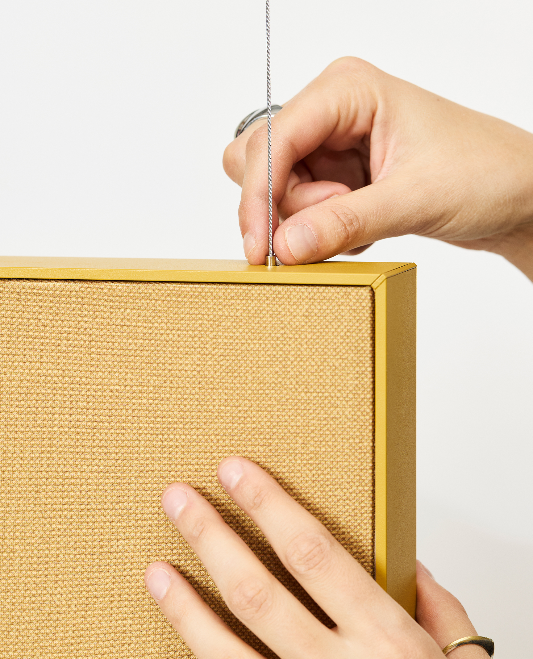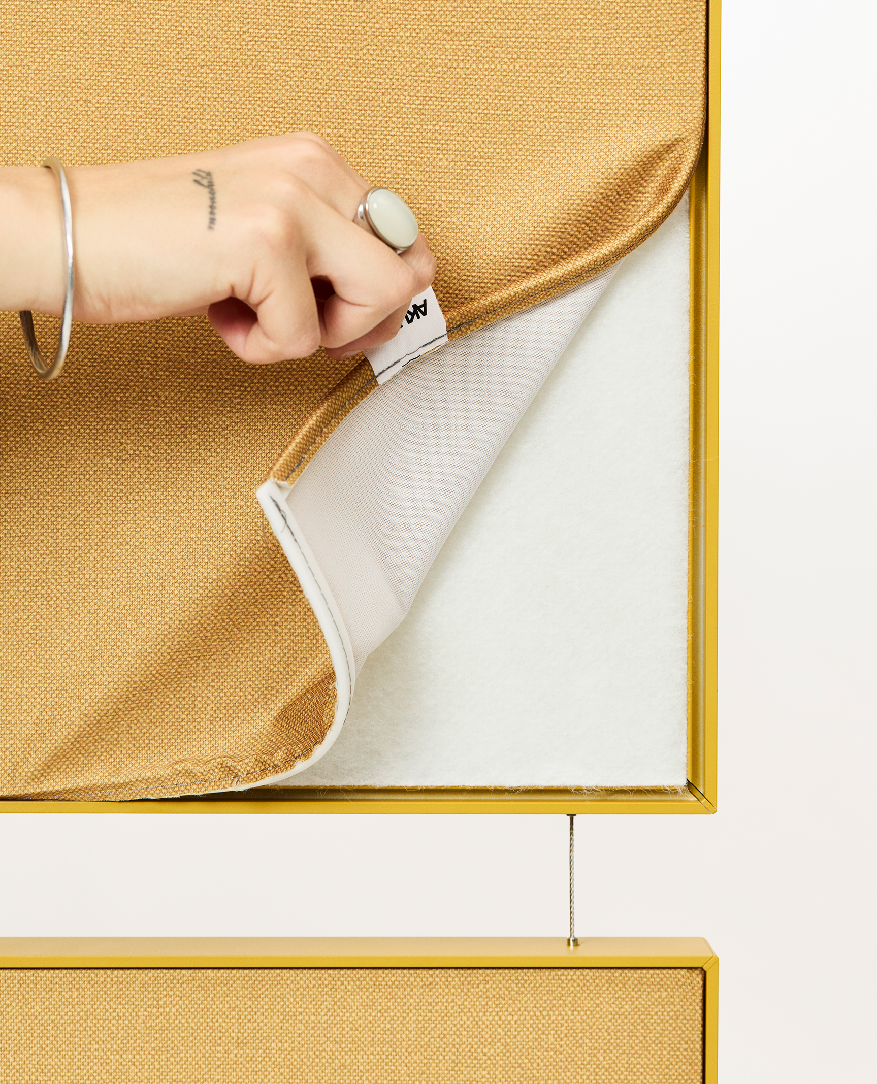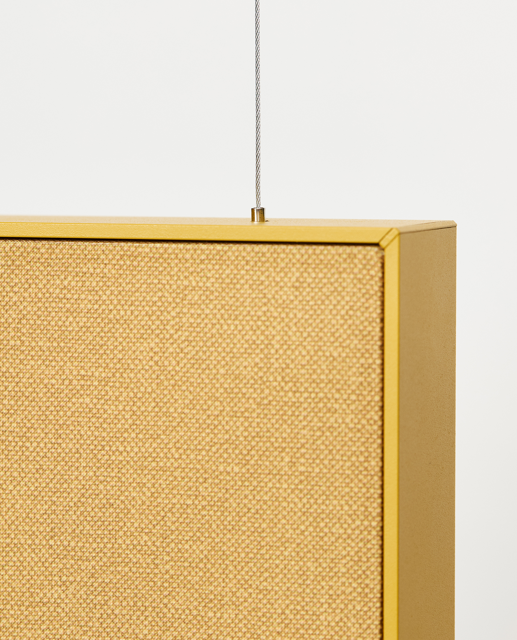Both front and rear textile surfaces can be removed and replaced independently of the acoustic core. This allows visual updates, surface maintenance and long-term adaptability without replacing the full unit.