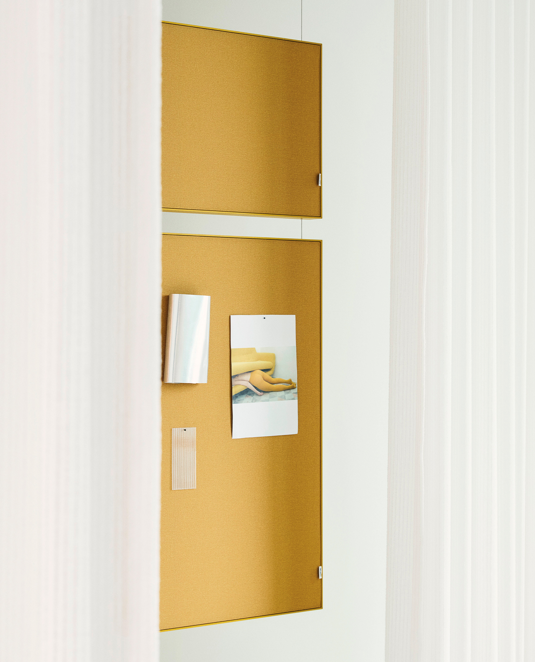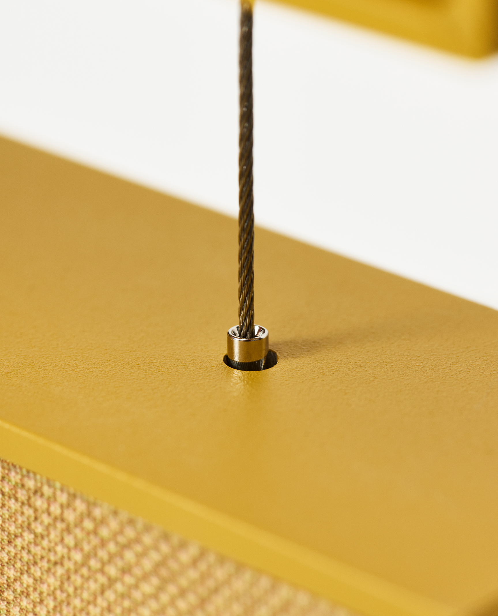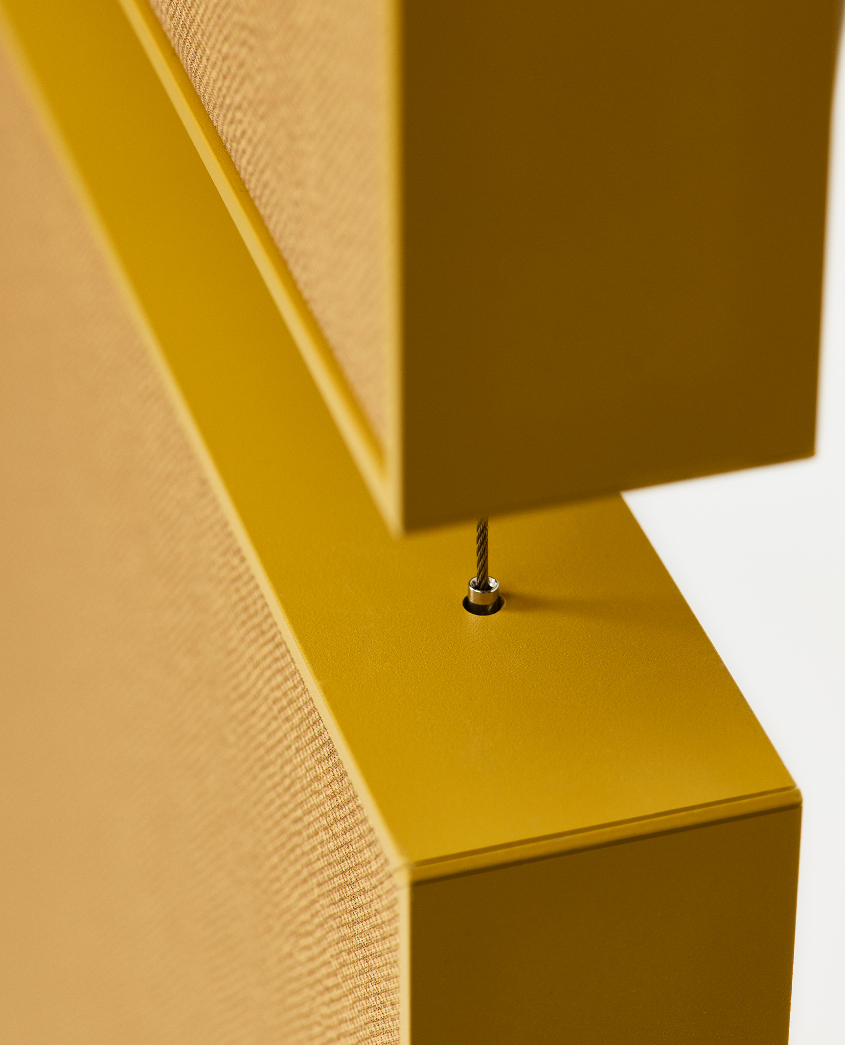 Both front and rear textile surfaces can be removed and replaced independently of the acoustic core. This allows visual updates, surface maintenance and long-term adaptability without replacing the full unit.