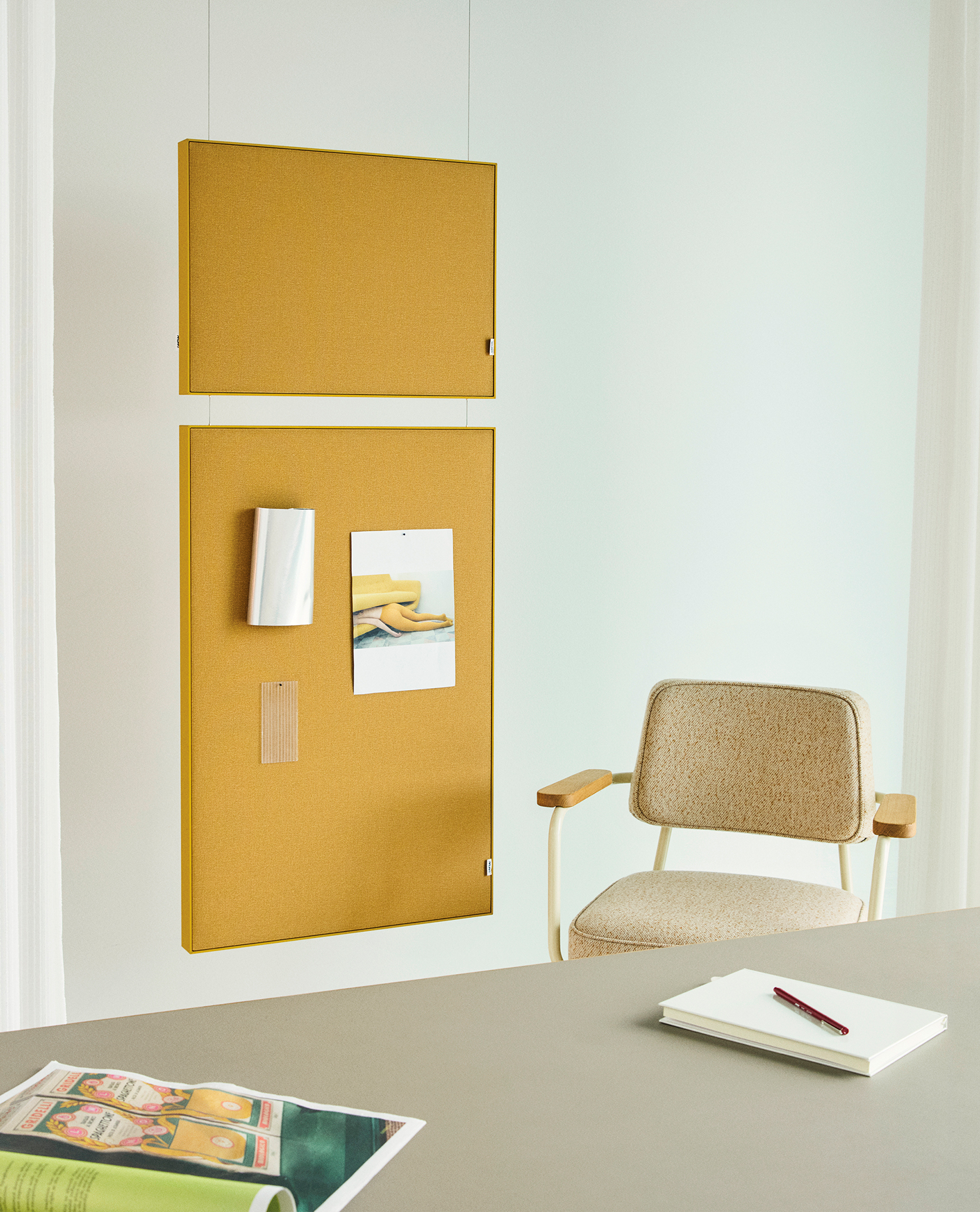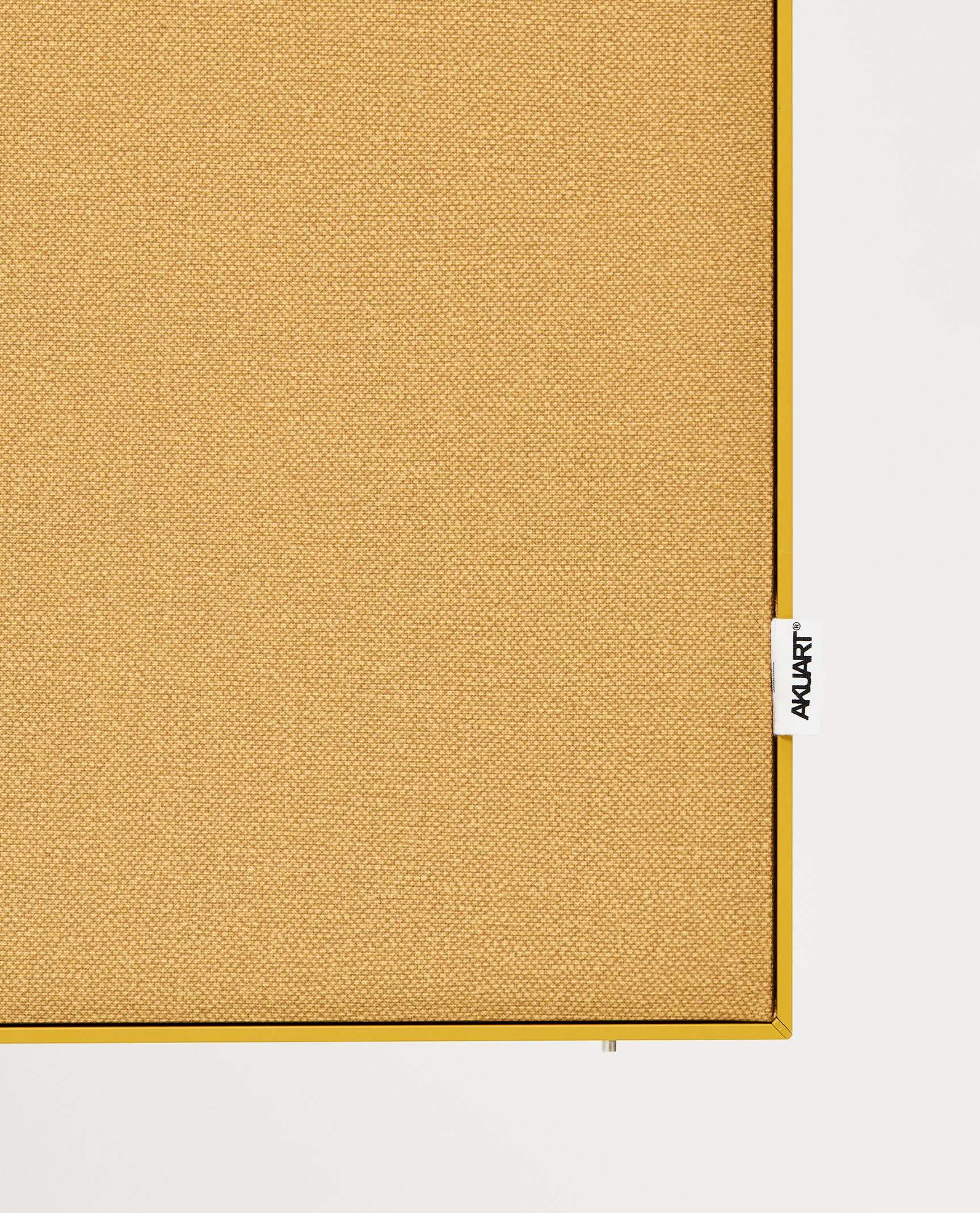 The screen features a soft acoustic surface that allows notes and lightweight materials to be pinned without compromising acoustic performance or surface integrity.