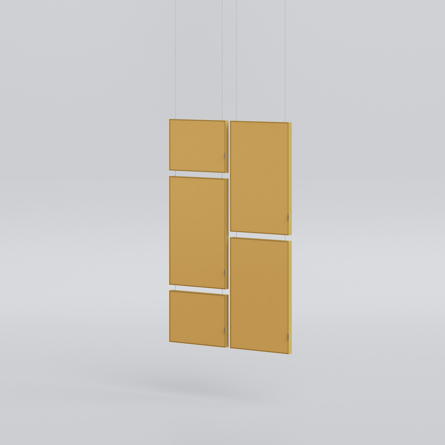 The Supersonic Vertical Suspended Screen is an effective suspended acoustic absorber for professional environments requiring measurable impact and transparent documentation. It reduces sound propagation and improves speech conditions, with documented acoustic performance. Constructed from high recycled-content materials and designed for disassembly, the modular aluminium frame ensures long service life. A defined range of formats, suspension solutions and finishes enables precise spatial zoning and integration.