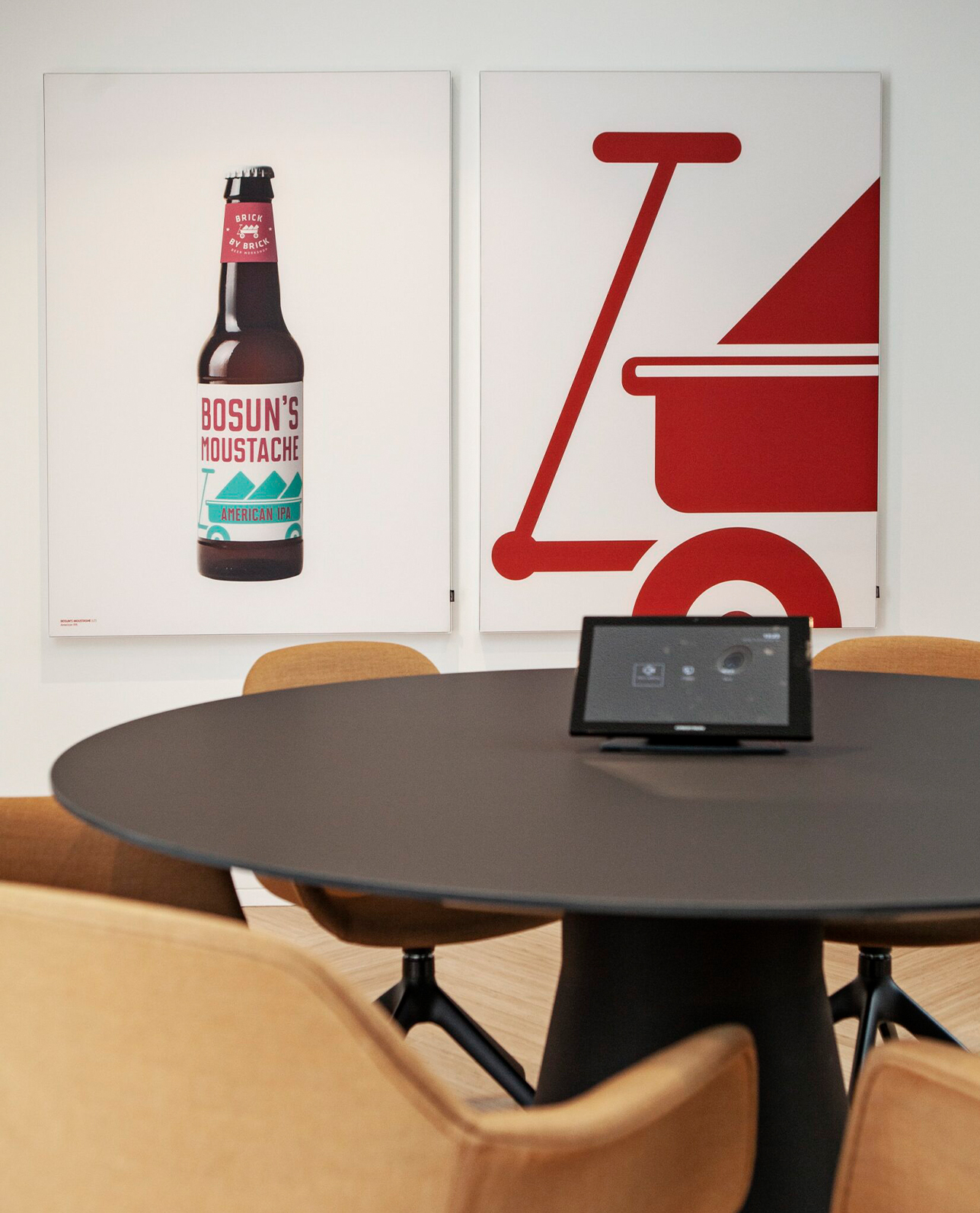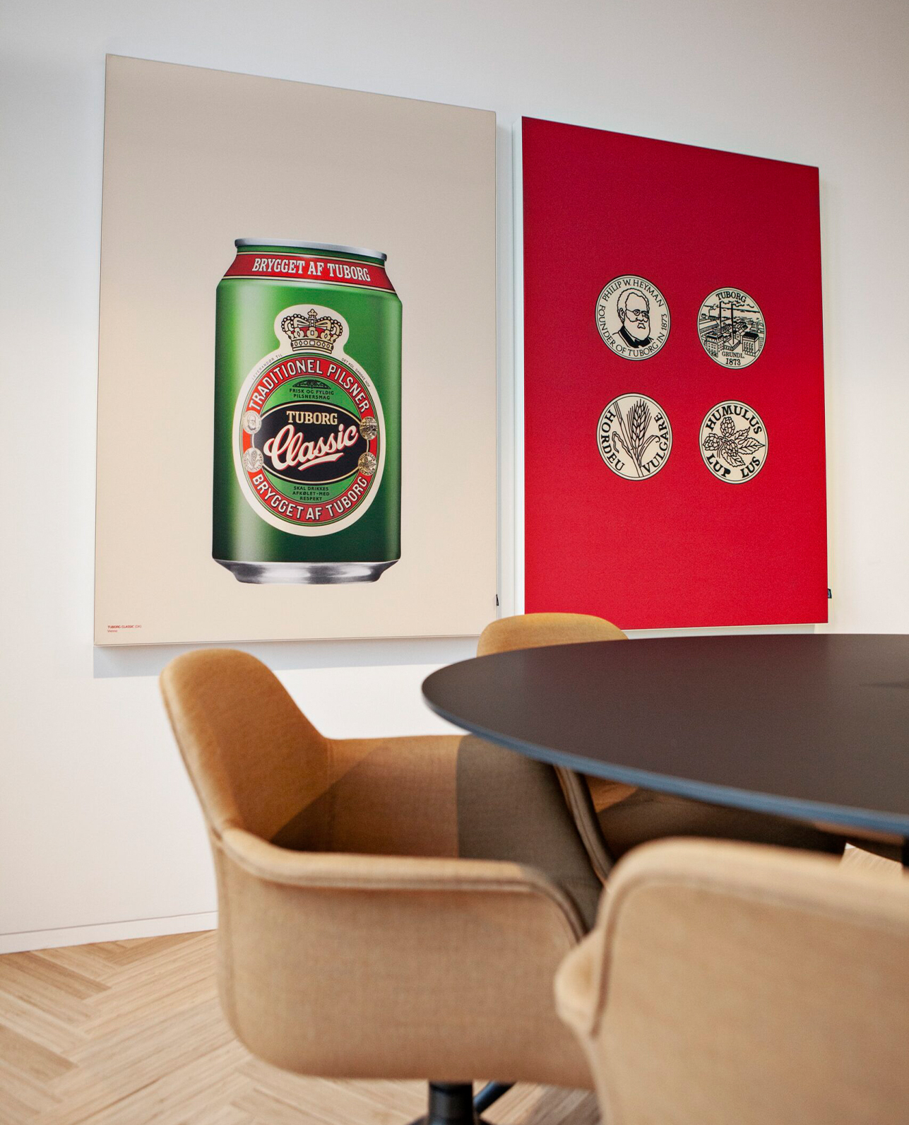 Danish design agency e-Types was trusted to make a strong visual design concept that would go as artwork on the wall panels. The designs accommodated a strong desire from Carlsberg to show pride in their 140 global sub-brands within the headquarters.