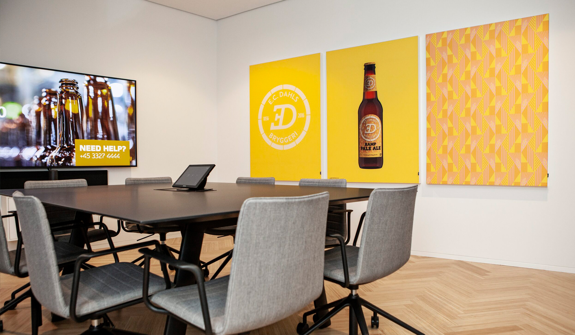 To reduce the echo, we defined the required amount and optimal placement of wall absorption. After a successful pilot project, Carlsberg decided to have wall panels installed in the majority of their headquarters’ meeting rooms.