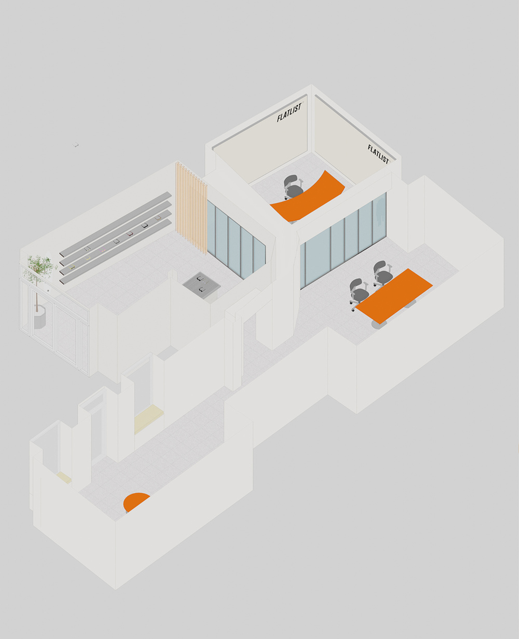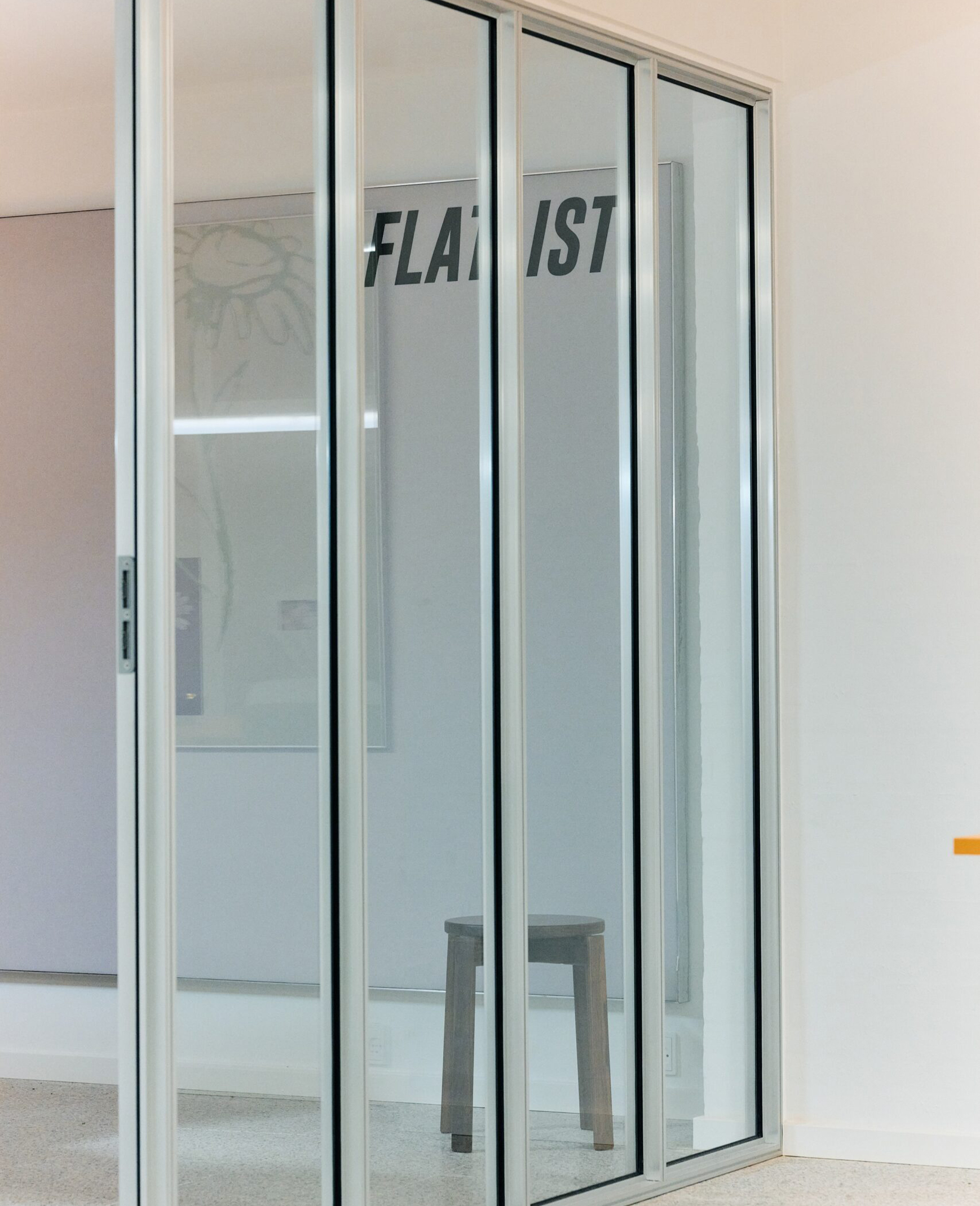 The Supersonic Wall Panels were delivered in a custom raw aluminium finish, specifically chosen to seamlessly blend into the overall crisp and industrial atmosphere. A distinctive touch was added by incorporating the Flatlist logo into the canvas.