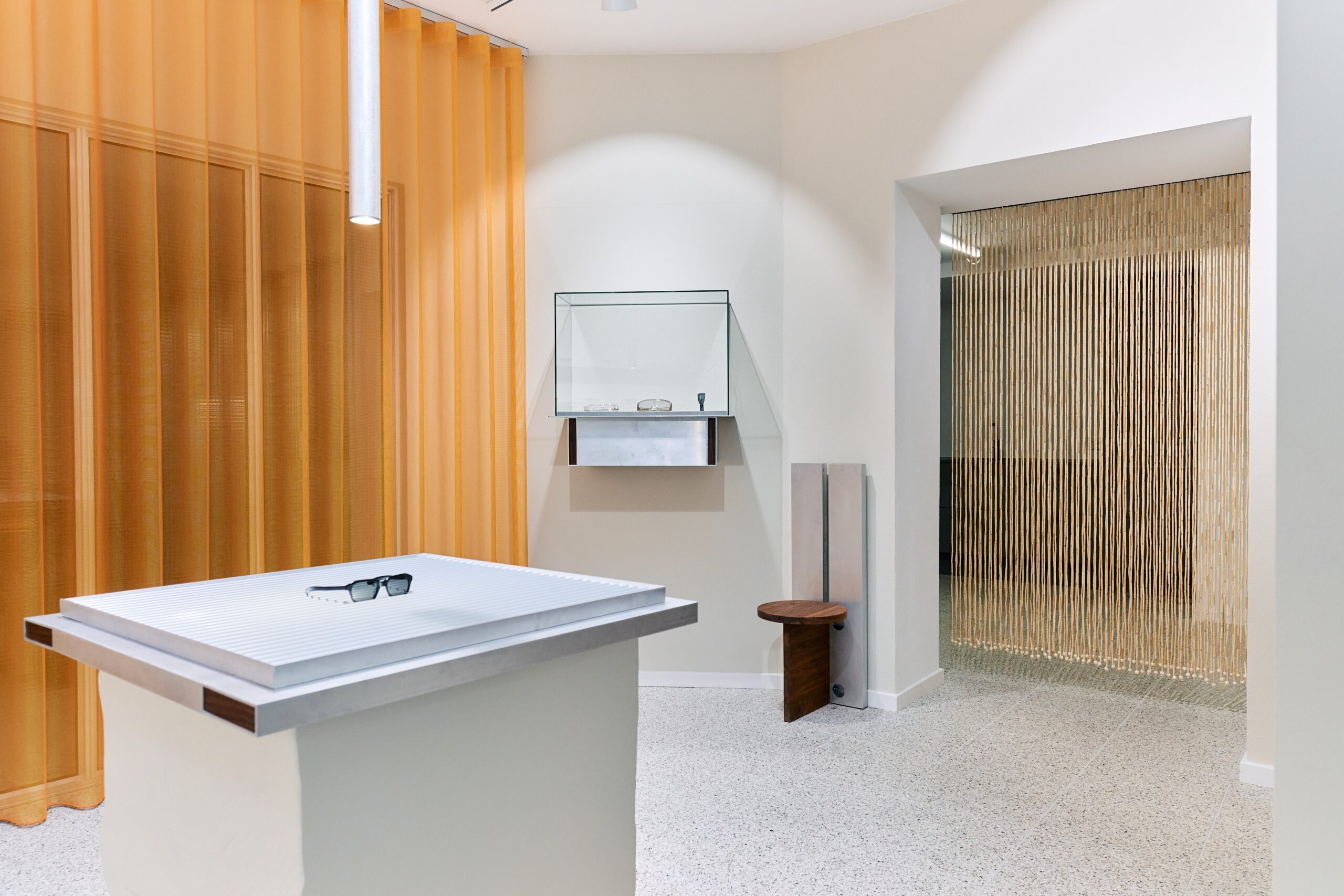 Akuart was enlisted in the design process by the design studio Krøyer-Sætter-Lassen to ensure a well-balanced acoustic environment in the recording studio designated for podcast and music recordings. This innovative space enables eyewear shoppers to witness the sound recording process involving music and fashion personalities within the Flatlist community while engaging in their shopping experience. However, the introduction of glass walls in the recording studio posed a challenge to sound quality, a critical element for effective sound recordings.