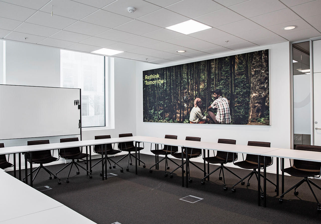 “By using neutral colored reusable canvases, we were able to split the process into two phases”, explains Bjørn Berthelsen, Sales Director at AKUART. “In the first phase, the building architect could focus solely on acoustic requirements. Afterwards, Novozymes and e-Types could implement the right visual solution that would match the overall interior design ambitions. By providing this flexibility, we could make the whole process more efficient.”