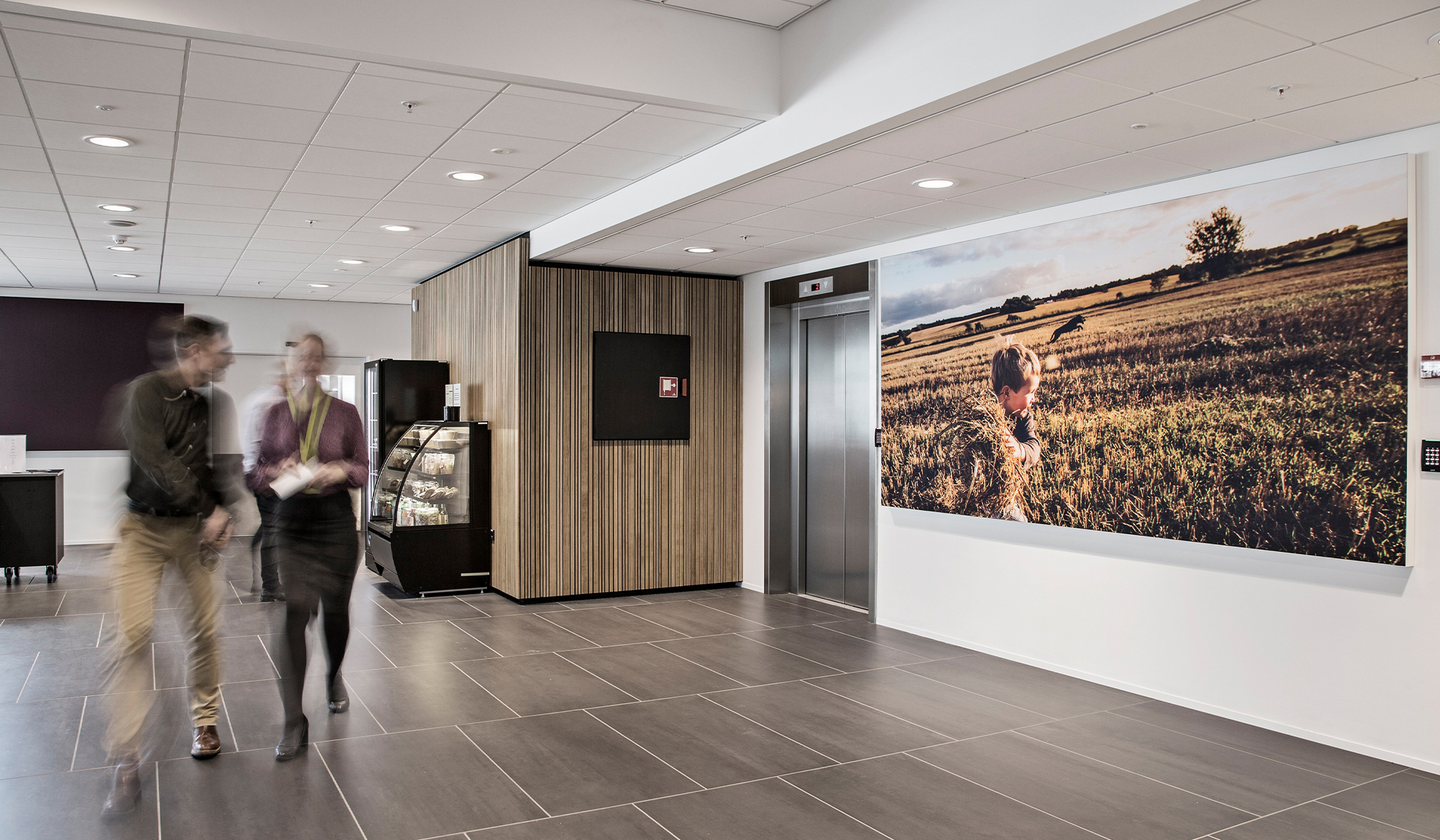 To convey a homely feeling, Danish design agency e-Types and AKUART designed the visuals for the acoustic panels. Through extensive color proofing, we ensured the artwork matched the furniture design. The result is a total solution that is both functionally and aesthetically optimal.