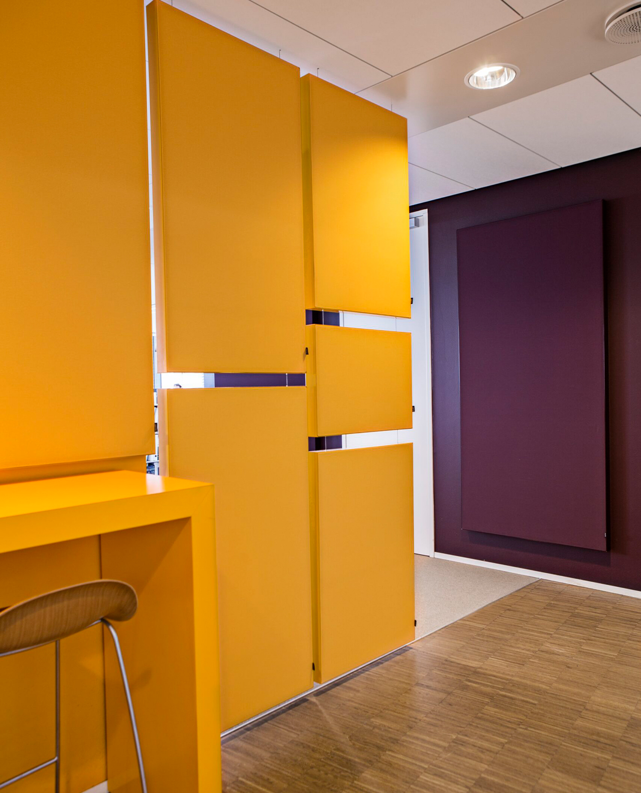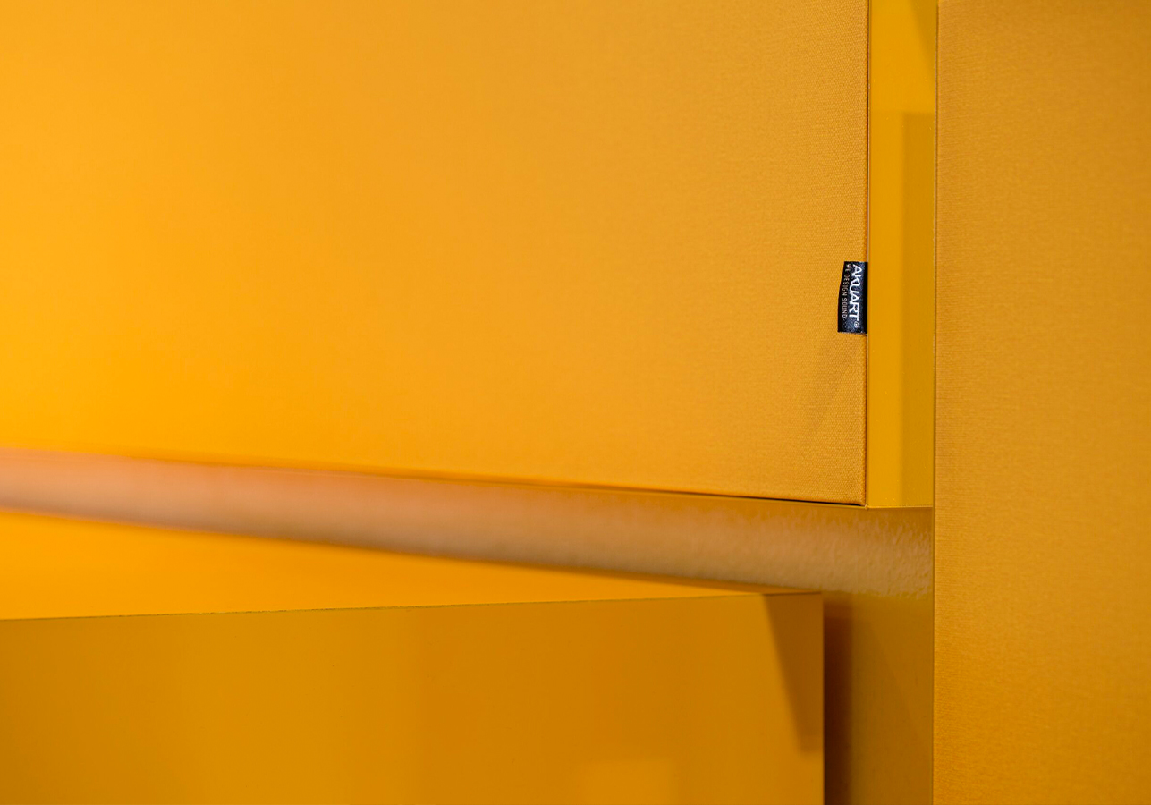 To make the elements blend in, we matched their colors with the dominant colors in the interior design. Also, textures were added to the print for a more tactile look and feel of the panels. The result is a subtle acoustic interior solution that works hand in glove with the existing interior.
