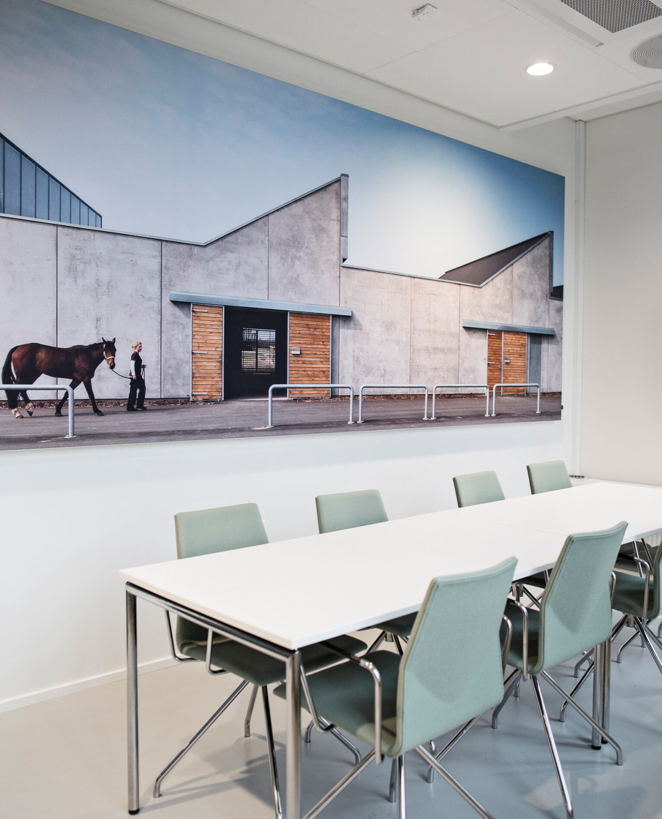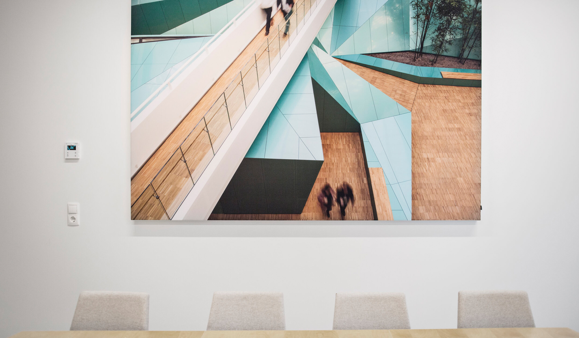 Afterwards, we could minimize sound reflection from the hard wall surfaces by installing and treating wall panels in both the open office spaces and meeting rooms. Thus, improving the sound quality and reducing flutter echo.
