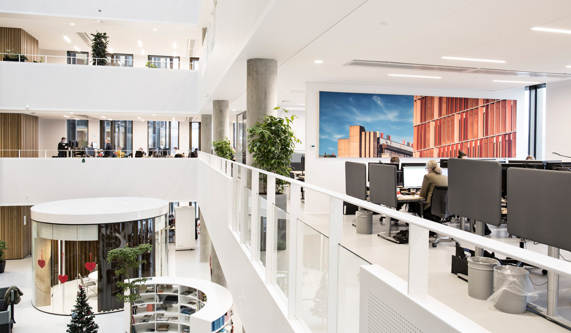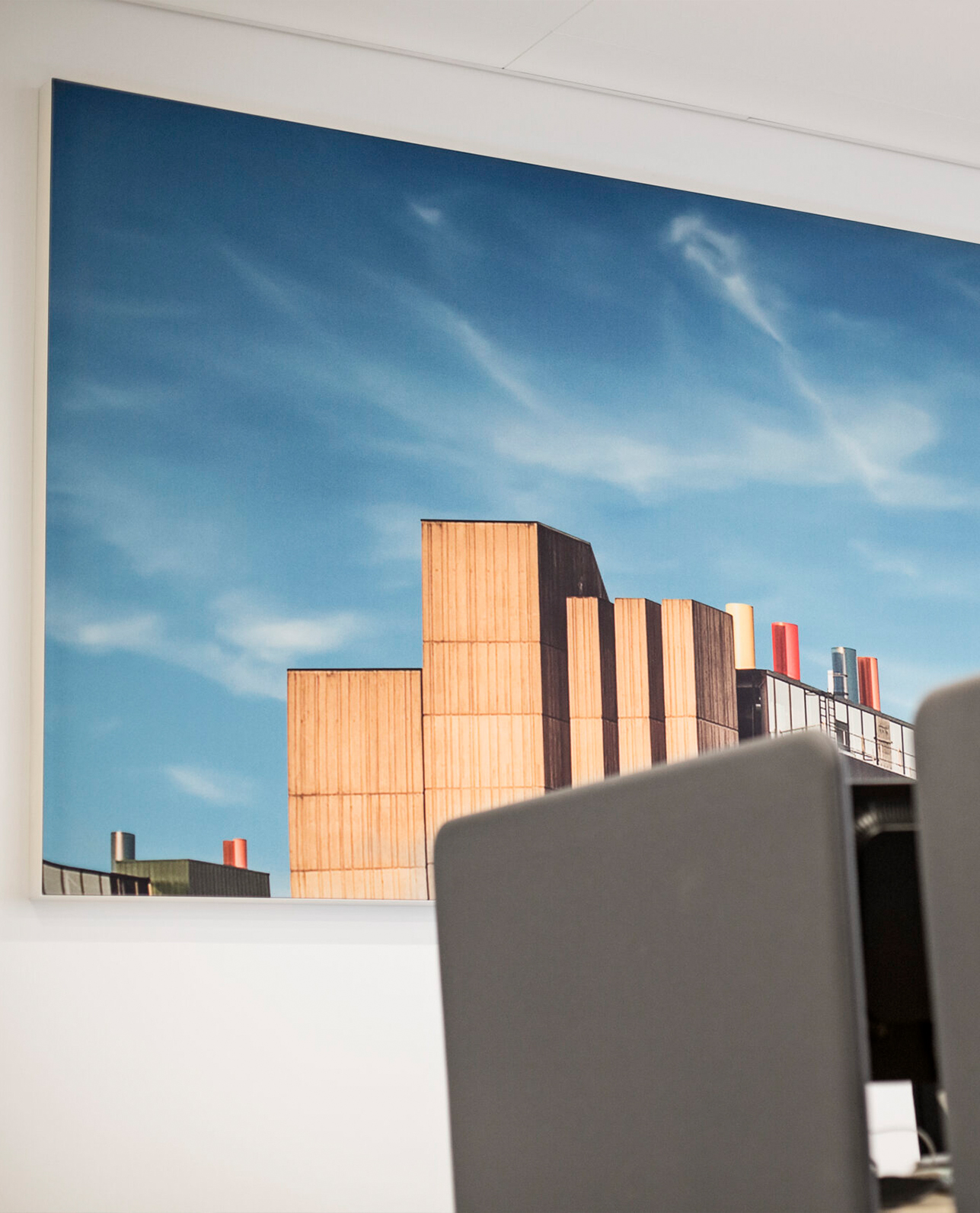 In their Copenhagen based headquarters, DBPA asked AKUART to help them optimize the sound environment in the large open office space and at the same time use the opportunity to manifest their impressive build achievements on the walls.