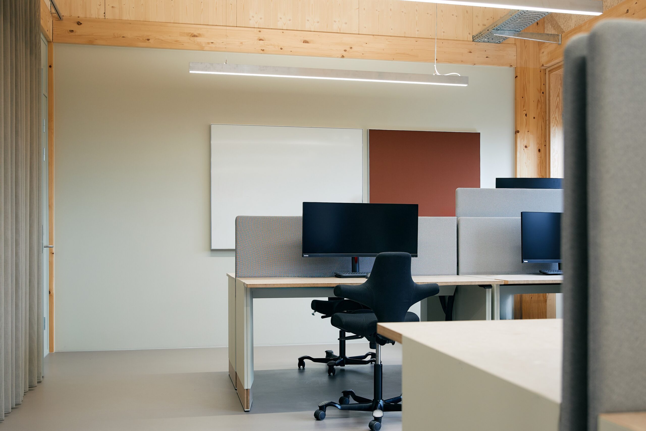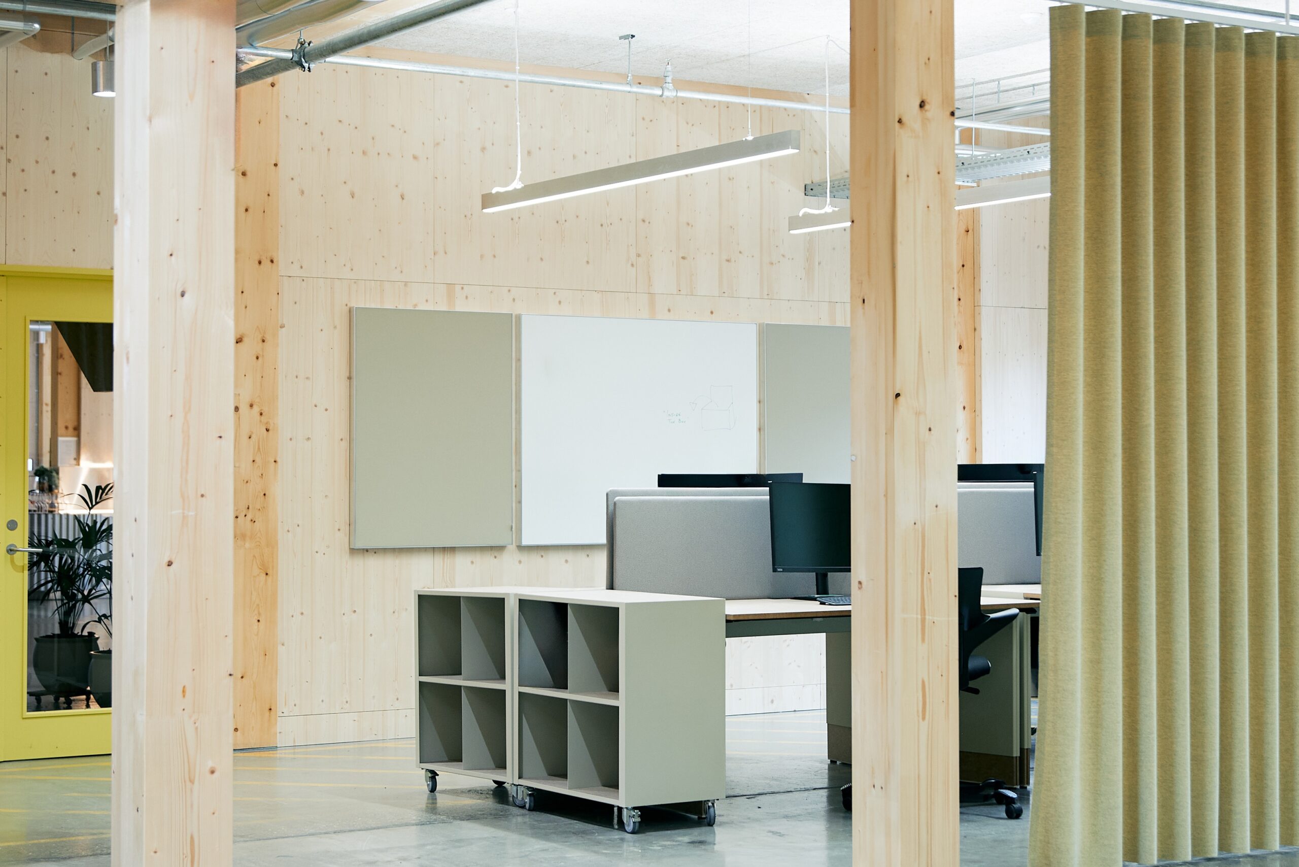 Rooted in material honesty, the renovation preserved the timber and concrete bones of the original warehouse, while Akuart’s raw aluminium frames complement the stripped-back palette of untreated materials. Supersonic panels secure clarity across studios, project rooms, and workshops, while writing boards turn walls into collaborative tools and mobile boards add flexibility for shifting work rhythms. Together, these elements create a calm, cohesive acoustic environment that balances focus with collaboration. With recycled frames and replaceable canvases, the solutions are as future-flexible as the building itself, ensuring spaces can evolve with VELUX’s needs while maintaining the atmosphere of balance and honesty.