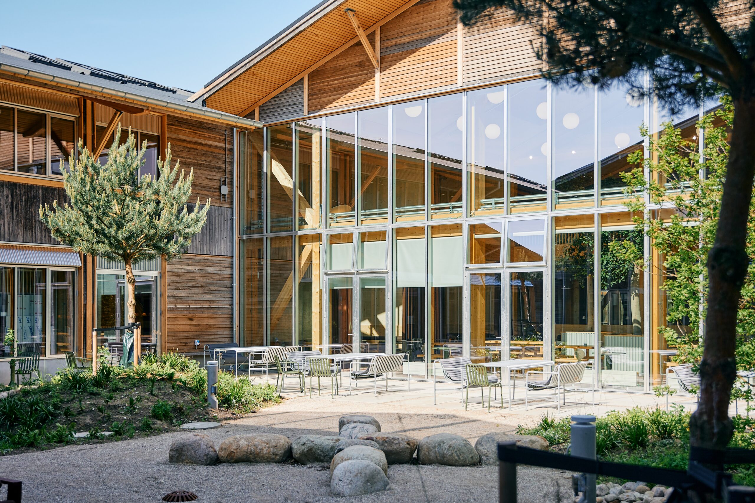 This approach significantly reduced material use and embodied carbon, demonstrating that renovation can be as radical as new build when driven by values of sustainability and reuse. Surrounded by greenery and filled with daylight, the Innovation House is both a workplace and a manifesto, showing how architecture can connect people, nature, and responsibility.