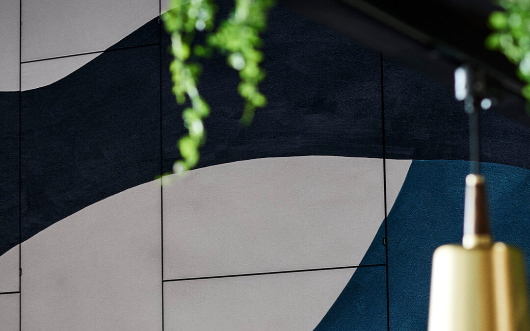The challenge was to find a way to balance these acoustic needs with the artistic vision that defines HUB Nordic. Enter Berit Mogensen Lopez, an artist whose work is characterised by the dynamic use of shapes, colours, and textures. Her piece, originally a digital print, was selected from Akuart’s gallery but given the massive scale of the wall, a staggering 4×30 metres, simple enlargement wouldn’t suffice. To ensure the artwork retained its clarity and impact, the piece was carefully repainted and digitised before being transformed into acoustic wall panels.